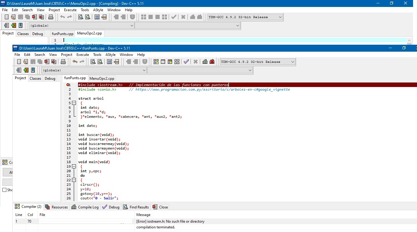 el mensaje que manda 2 95 [Error] conio: No such file or directory … lo he escrito sin «.h», revisado alguna alternativa, y mejor pregunto a la fuente cómo resolver éste inconveniente porque es raro éste error., o por favor compartanme el link del compilador para correr el código. Les agradezco su ayuda o alternativas para solucionarlo. Desde ya, Gracias. https://uploads.disquscdn.com/images/c6008661a16f21429520aec70868ebb4ed66a4131ab248802110157540208b52.jpg